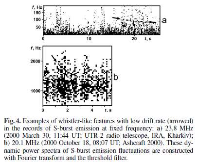 Arkhypov and Rucker 2014, "Dispersion-like phenomena in Jovian decametric S-bursts: Tabooed Facts"